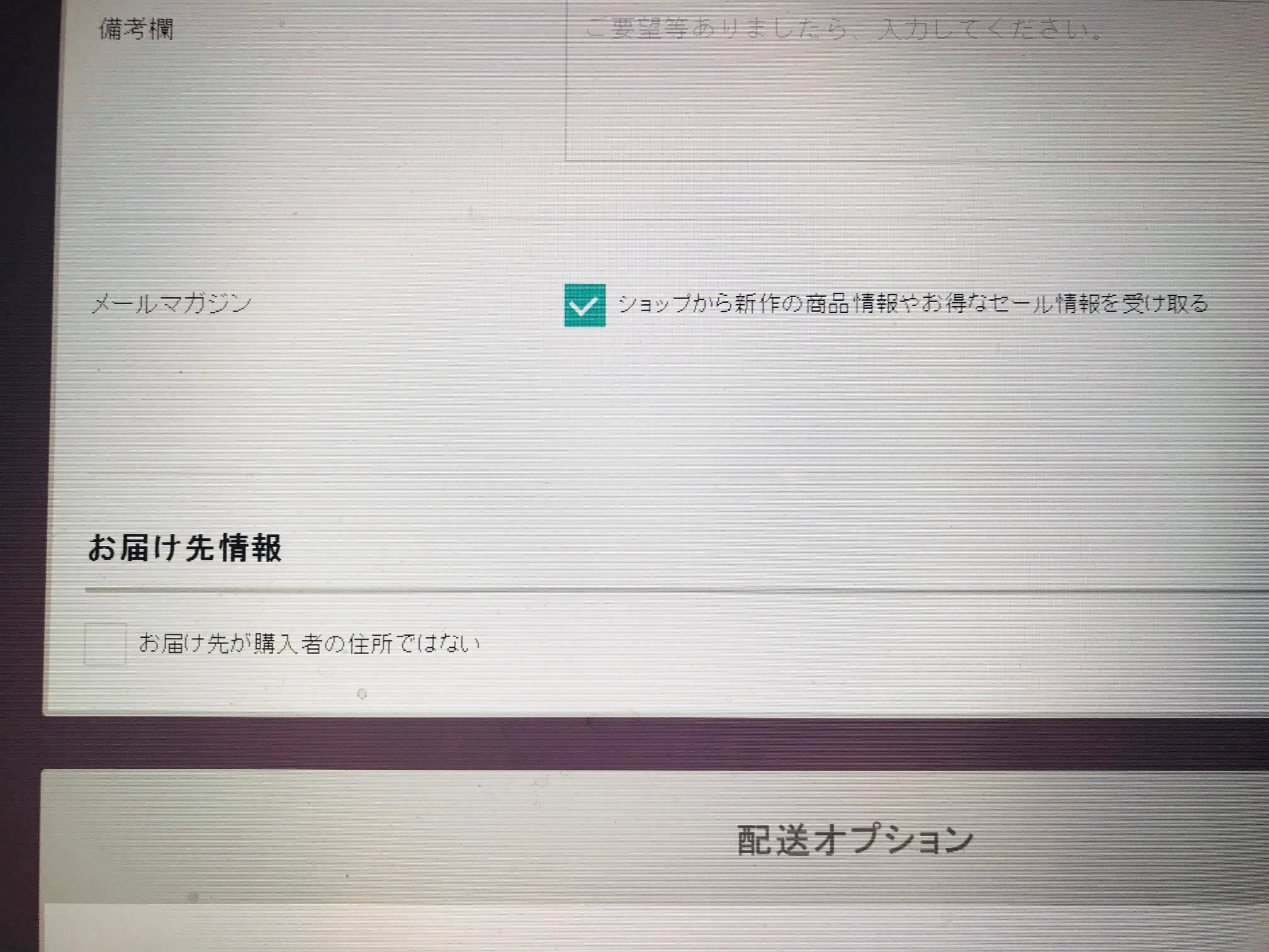 必ず、チェックを入れてお届け先フォームを出し、別なお届け先情報をご記入下さい。