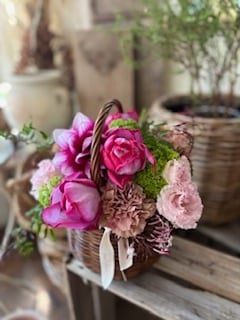 母の日◆お母さんに花を贈ろう*季節の花のおまかせパニエアレンジメント8000円